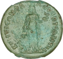 ΚΡΗΤΙΕΩΝ ΦΛΑΟΥΙΟΠΟΛΙΤΩΝ; Tyche standing facing, head left, holding rudder and cornucopia