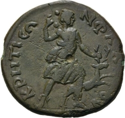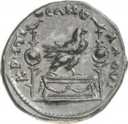 ΚΡΗΤΙΕΩΝ ΦΛΑΟΥΙ(ΟΠΟ); eagle on garlanded altar standing right, between two aquilae; capricorn on top of each aquila