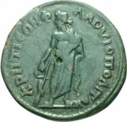 ΚΡΗΤΙΕΩΝ ΦΛΑΟΥΙΟΠΟΛΙ; Demeter standing facing, head left, holding downwards ears of corn and resting on sceptre