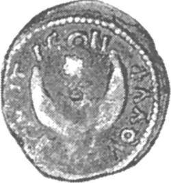 ΚΡΗΤΙΕΩΝ ΦΛΑΟΥΙΟ; Hermes (?) standing facing, head left, holding purse and caduceus