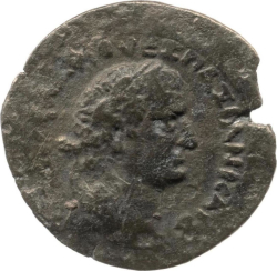 ΑΥΤΟΚΡ ΟΥΕΣΠ ΚΑΙΣ ΣΕΒ; laureate head of Vespasian, right