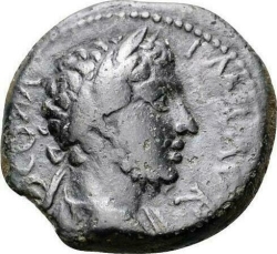 [IMP?] M AVR A[NTON AVG?] (all As shaped as Λ); laureate head of Marcus Aurelius, right