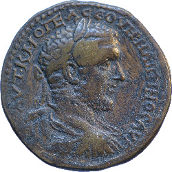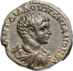 ΑΝΤΩΝΕΙΝΟϹ ΑΥΓΟΥϹΤΟϹ; laureate, draped and cuirassed bust of Caracalla, right, seen from rear