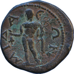 ΜΙΔΑΕΩΝ; Hermes standing left, holding purse and caduceus