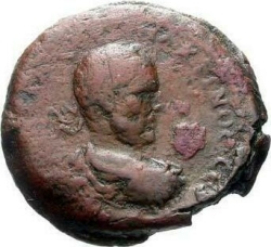 [Μ]Α ΟΠ ΑΝΤ ΔΙΑΔΟΥΜΕΝΙΑΝΟϹ [Κ ϹΕΒ]; bare-headed, draped and cuirassed bust of Diadumenian, right, seen from front