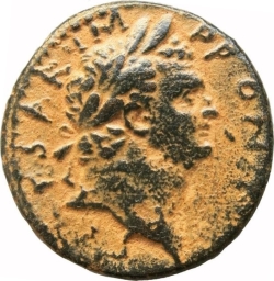 IMP CAESAR VESPASIAN AVG; laureate head of Vespasian, right