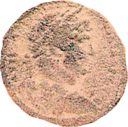 L ΙΔ; Harpocrates standing facing, head left, raising finger to lips and holding cornucopia; to left, hawk (?)