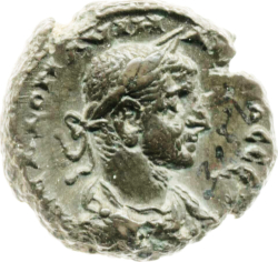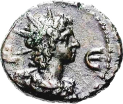 Ι Α Ϲ ΟΥΑΒΑΛΛΑΘΟϹ (Α)ΘΗΝΟ Υ ΑΥΤ Ϲ (Ρ)(ω), (L Δ); laureate, draped and cuirassed bust of Vaballathus, right, seen from front
