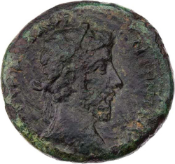 [IM C?] M AV ANTONIN; laureate head of Marcus Aurelius (long beard with long curls?), right