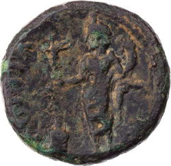C G I H PAR; nude Heracles/Hercules standing, right, resting arm on club covered with lion skin; club resting on rock