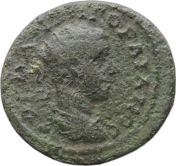 Æ (25 mm)    9.98 g. 																								  Laureate bust ΑΥ(Τ) C M ANTΩNIOC GORDIANOS;  laureate, draped and cuirassed bust of Gordian III, left, seen from rear  COLΩNE(I)A CASSANDRIA;  nymph Nysa, standing facing, head right, raising chiton (?) with her right hand above her head, holding infant Bacchus and cornucopia in her left hand |