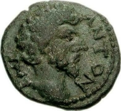 ΑΥΤΟ ΚΑΙϹΑΡ ΑΝΤΩΝΕΙΝΟϹ; laureate head of Antoninus Pius, right