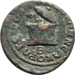 ΚΟΙΝΟΝ ΜΑΚΕΔΟΝΩΝ Β ΝΕΩΚΟ; cista from which a serpent rises, right
