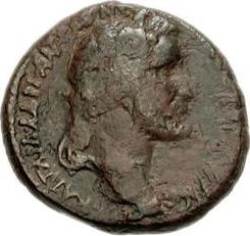 ]? ΜΑΡ ΑΥΡΗ ΚΟΜΟΔΟϹ ΑΝ (Αs shaped as Λs); laureate-headed bust of Commodus wearing cuirass and paludamentum, right