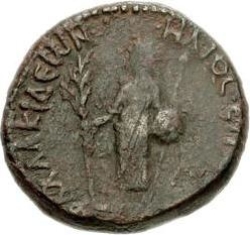 ΝΕΙΚΟΠΟΛΕΙΤωΝ ΤΗϹ ϹΕΛΕΥΚΙΔΟϹ; laurel wreath above draped table
