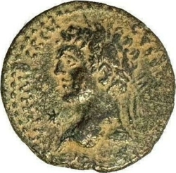 ΑΥΤ(Ο) ΚΑΙ(Ϲ) ΤΙ(Τ) ΑΙΛ ΑΔΡ(Ι(Α)) ΑΝΤωΝΕΙΝΟϹ ϹΕΒ(Α) ΕΥ(ϹΕΒΗ(Ϲ)); laureate-headed bust of Antoninus Pius wearing paludamentum, left