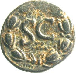 S C (and below, numeral letter Α, Β, Γ, Δ Ε, Ϛ, Ζ, Θ or Ι); in laurel wreath; sometimes, crescent