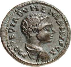 IVLIA MAESA AVS (sic); diademed and draped bust of Julia Maesa, right