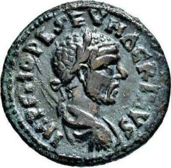 IM CEP [ ]; bare-headed bust of uncertain emperor (Septimius Severus?) wearing cuirass and paludamentum, right, seen from rear