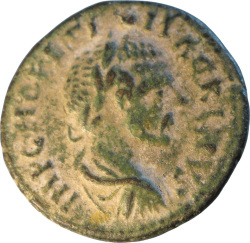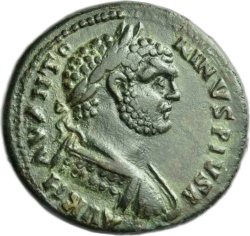 [ ] PI AV; laureate, draped and cuirassed bust of Caracalla, right, seen from rear