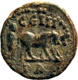 C G I H PA; she-wolf standing right, head left, feeding twins