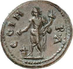 C G I H P (A); Genius Coloniae standing facing, head left, holding cornucopia and patera over lighted altar
