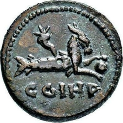 C G I H P; Capricorn right, holding globe between fore-hoofs; above, cornucopia