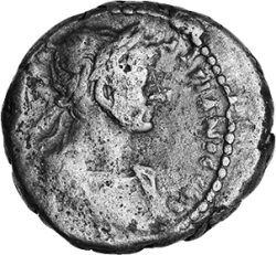L Γ; draped bust of Alexandria wearing cap in form of elephant’s head, right