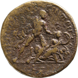 ΤΙΑΝΩΝ; Sarapis seated left, extending arm over Cerberus, and holding sceptre