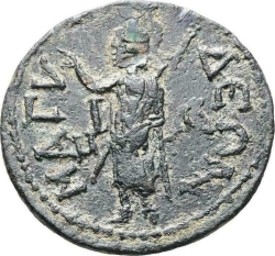ΑϹΠΕΝΔΙΩΝ; Sarapis standing left, raising arm, holding sceptre; at feet, altar