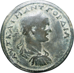 laureate and cuirassed bust of Gordian III, right, seen from front, drapery on left shoulder