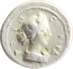 corn-wreathed head of Kore Soteira (assimilated to portrait of Faustina II?), right