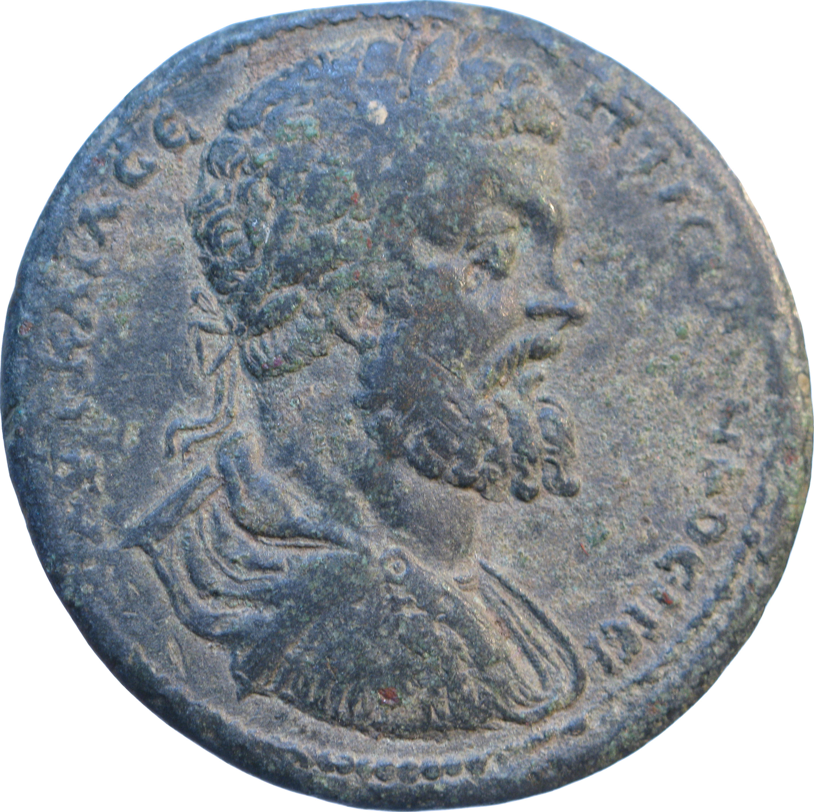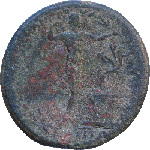Apollo standing right, drawing arrow from quiver with his right hand, holding bow in left; at his feet, right, tree on altar |