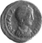 diademed and draped bust of Julia Domna, right