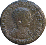 bare-headed and draped bust of Diadumenian, right, seen from front |