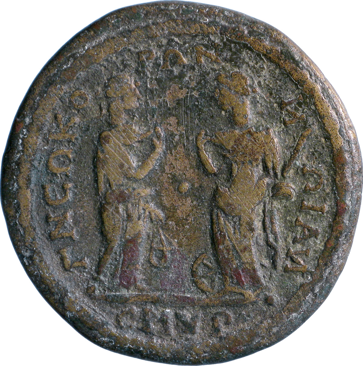 On the rev, ΝΑΙΩΝ is retrograde and reads anti-clockwise.