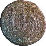 Apollo standing facing, holding stag and bow, between two figures, looking each other; the one on the right placing a crown on Apollo’s head |