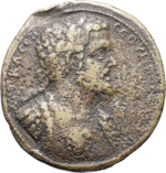 laureate and cuirassed bust of Septimius Severus, right, seen from front, with gorgoneion on cuirass