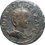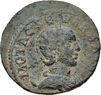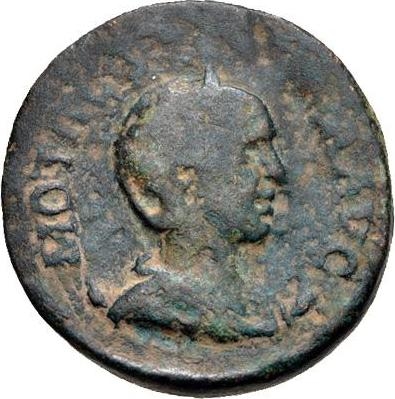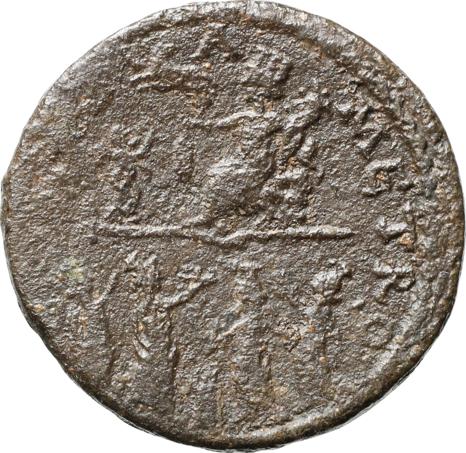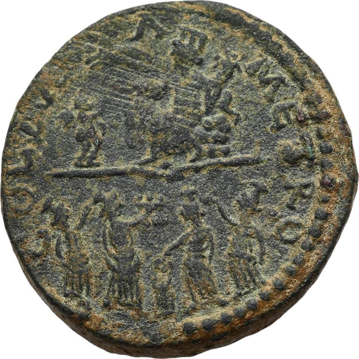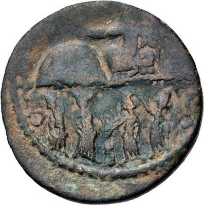 the rev. has a large dome-shaped device in place of Marsyas, however, the die in question is identical to coin no. 2, so this is not a new type; possibly the result of an attempt to repair a major flaw in the die?
