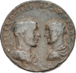 confronted busts of Philip I, laureate, draped and cuirassed, right, seen from front, and Philip II, radiate, draped and cuirassed, left, seen from rear