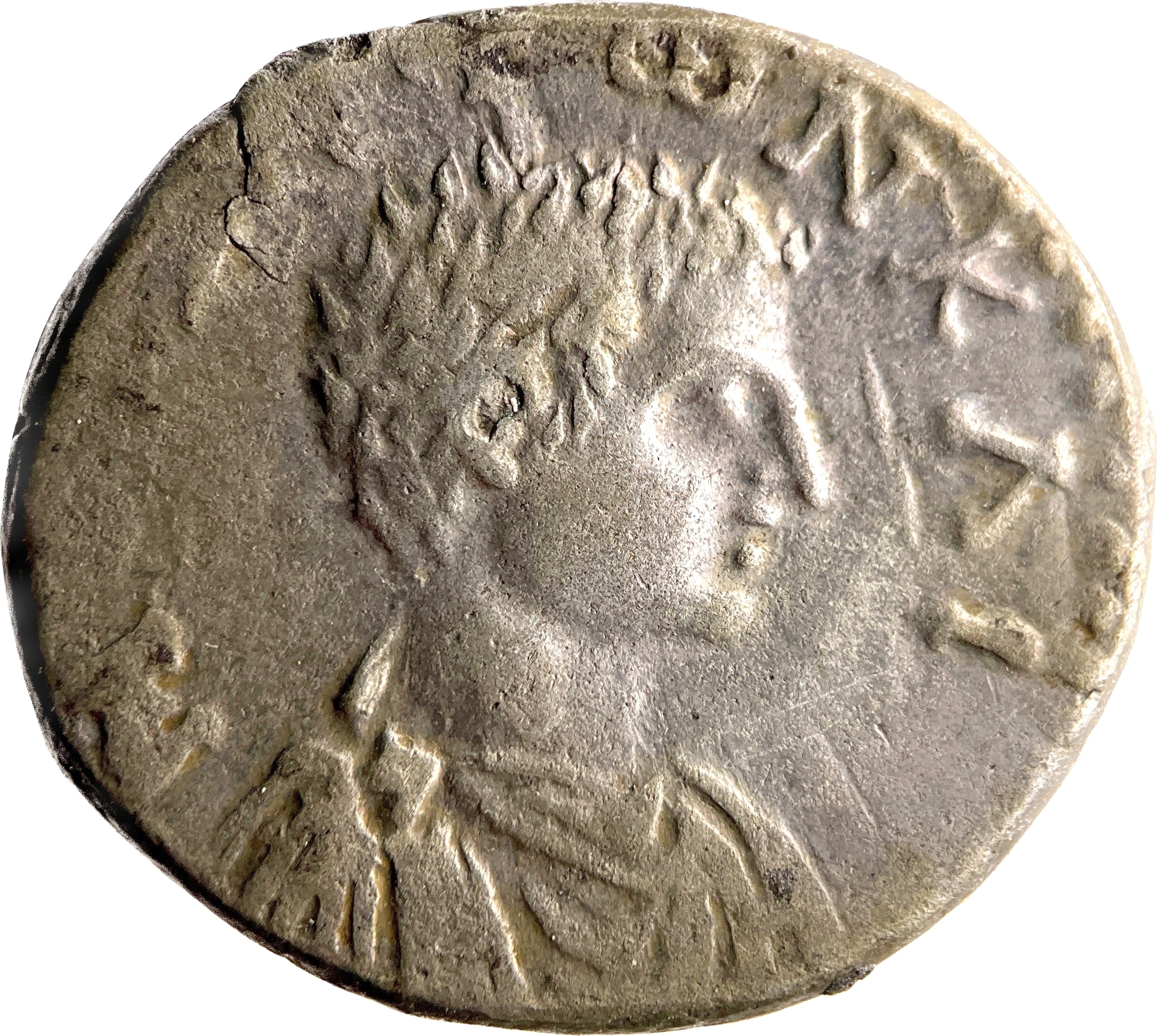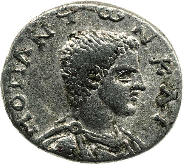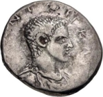 bare-headed, draped and cuirassed bust of Diadumenian, right, seen from front