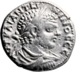 laureate, draped and cuirassed bust of Caracalla, right, seen from rear
