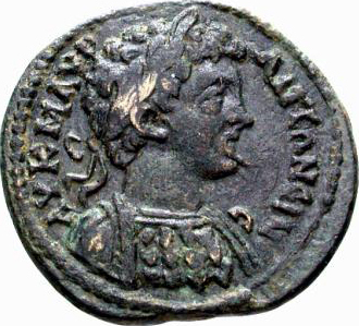 laureate and cuirassed bust of Caracalla, right, seen from front