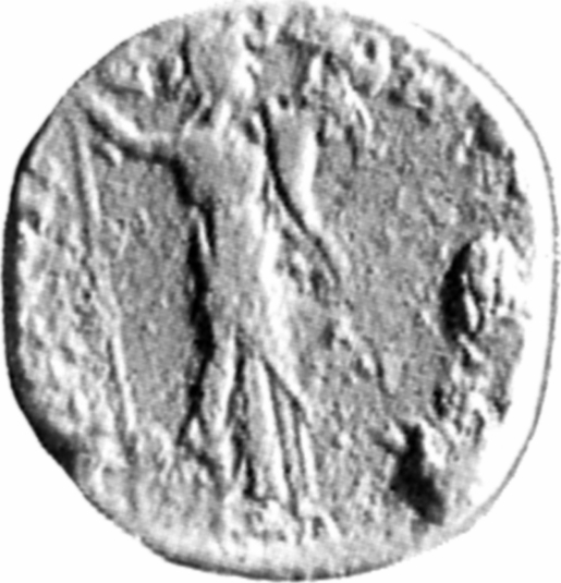 Oikonomidou 16 (Calomino 508) shows Tyche with head turned r., Oikonomidou 19 (Calomino 509) shows her with head turned l. Due the poor preservation of the coin listed, Oikonomidou's description of type 19 remained imprecise ('female figure standing r., holding cornucopia').
