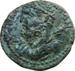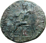 Zeus (or Demos) seated left, holding patera and sceptre; in front, the three Charites