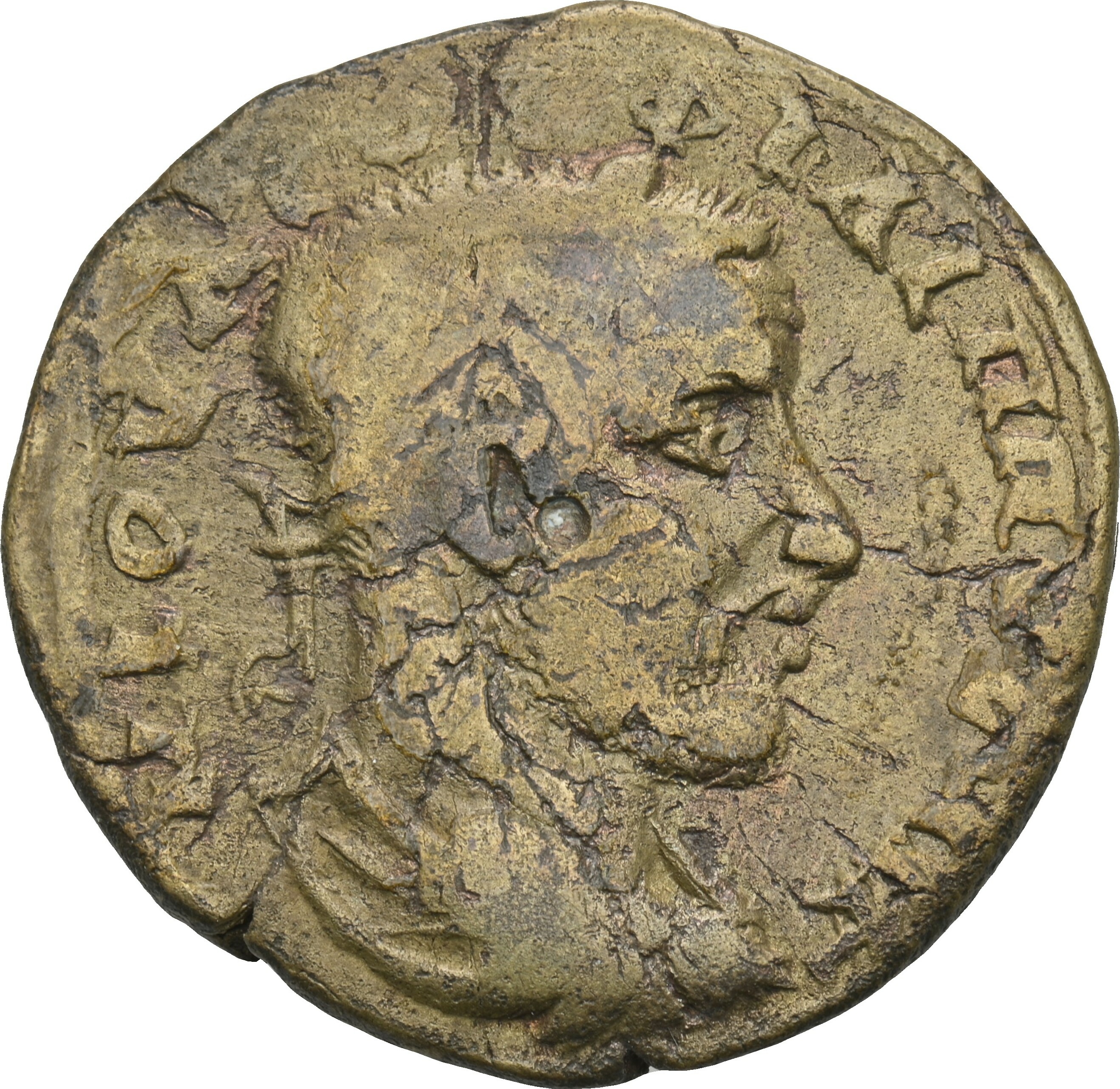 laureate, draped and cuirassed bust of Philip I, right, seen from rear