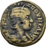 diademed and draped bust of Otacilia Severa, right