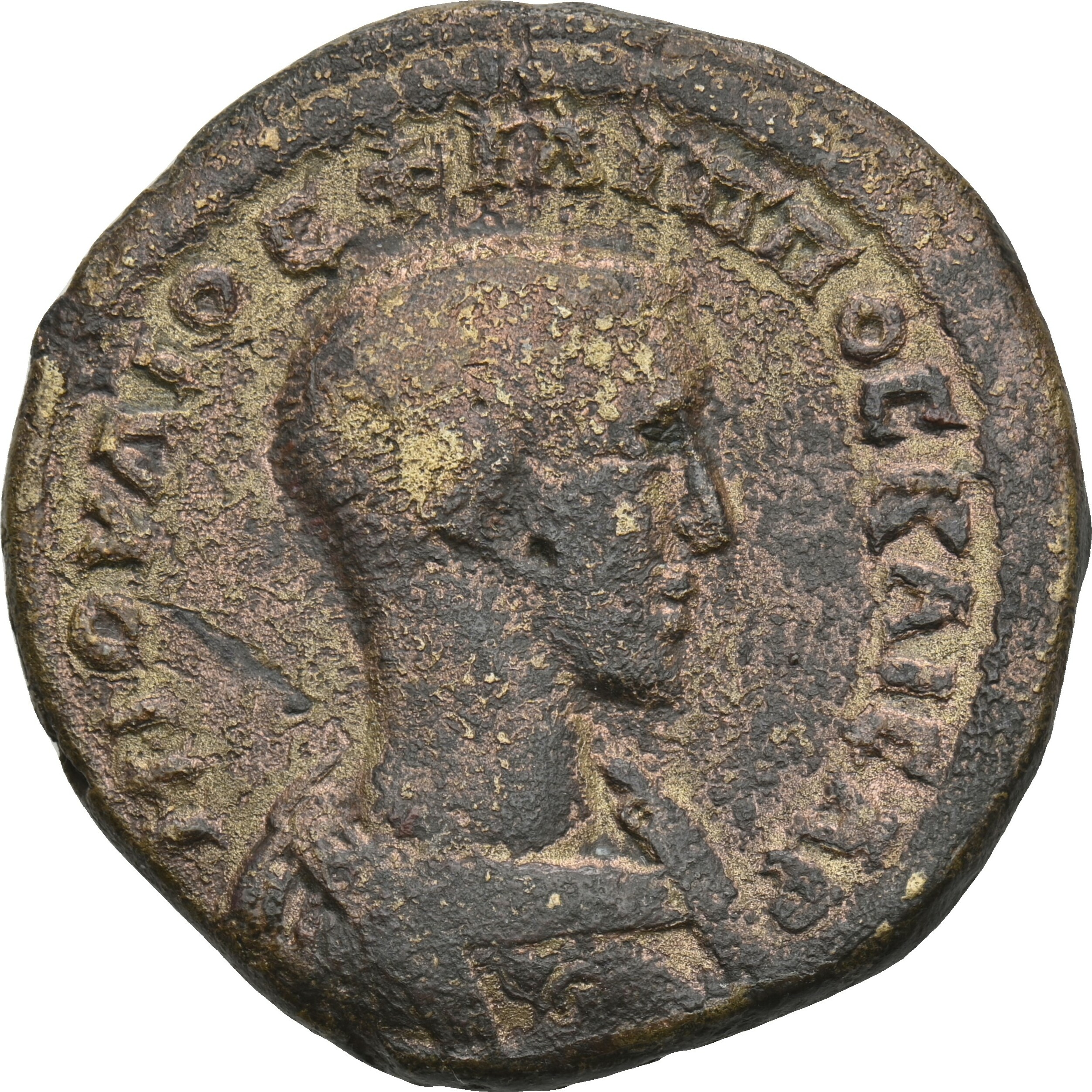 bare-headed and cuirassed bust of Philip II, right, seen from front