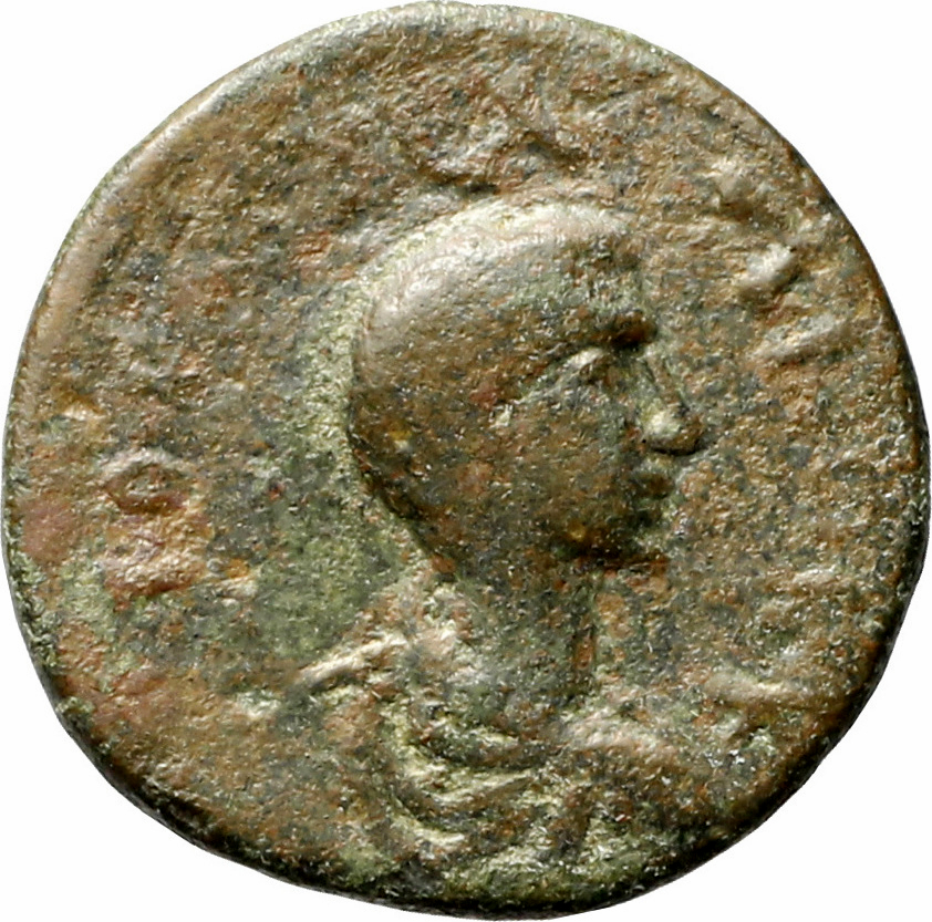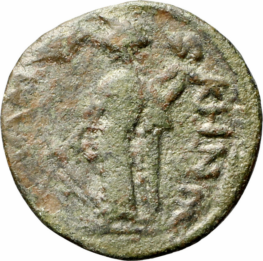 Tyche standing left, holding rudder and cornucopia