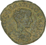 Tyche standing left, holding cult statue of Artemis Ephesia and cornucopia